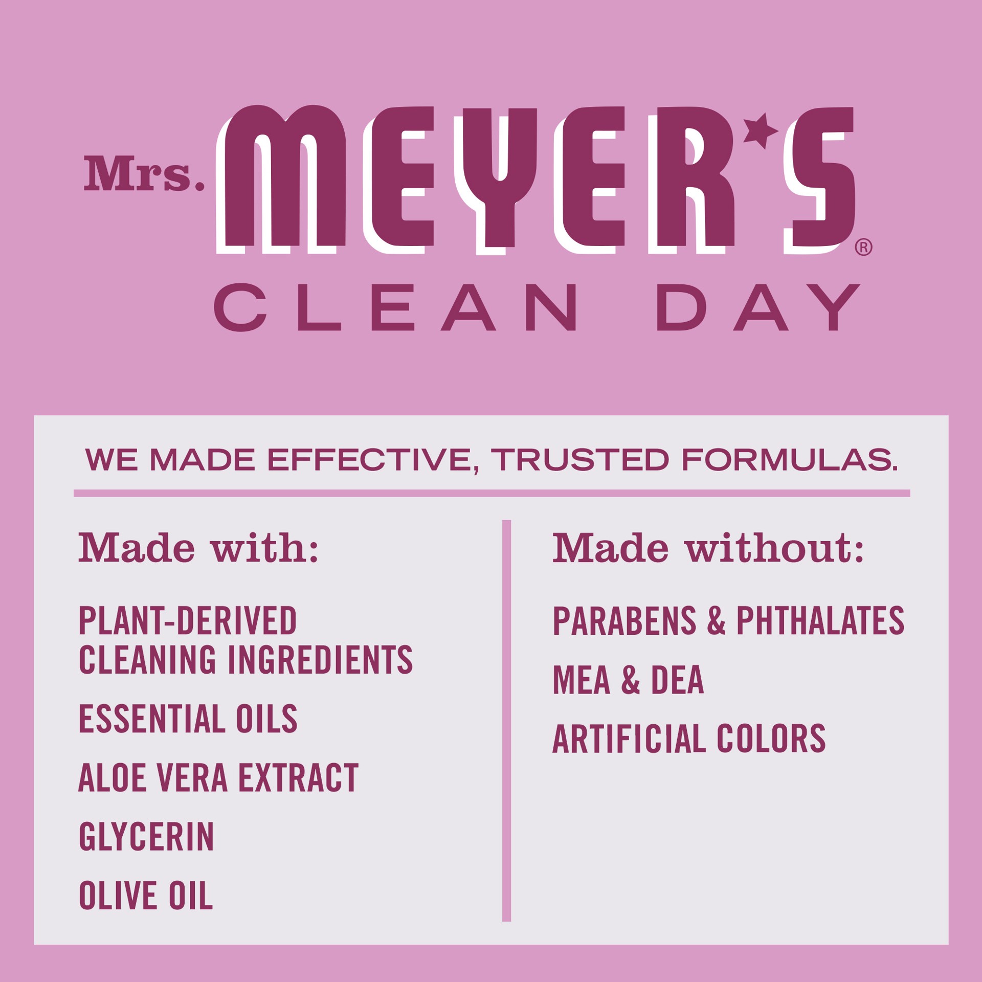 - Mrs. Meyer's products are made with cruelty-free formulas and are Leaping Bunny certified