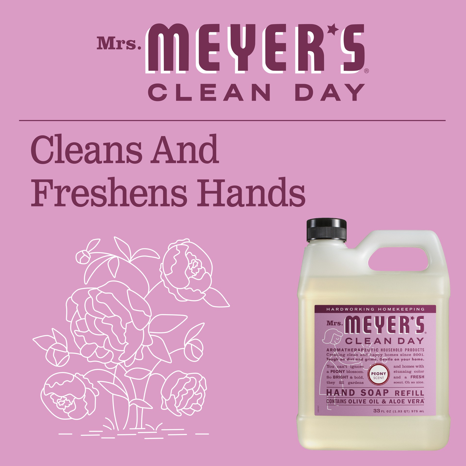 Mrs. Meyer's Clean Day Liquid Hand Soap Refill, Peony Scent, 33 Ounce Bottle
