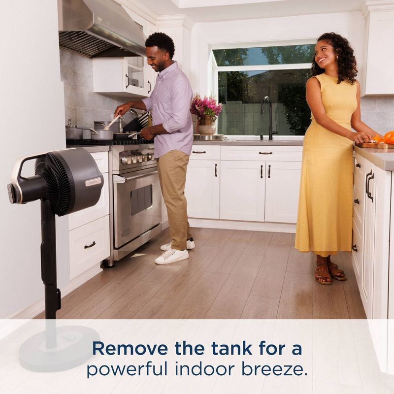 - Mist in any mode: With Shark's removable MistPro Tank, you can keep connected to the tabletop fan and bring the tank with you, no pedestal needed. Select between intermittent or constant mist, and even add ice for cooler mist.