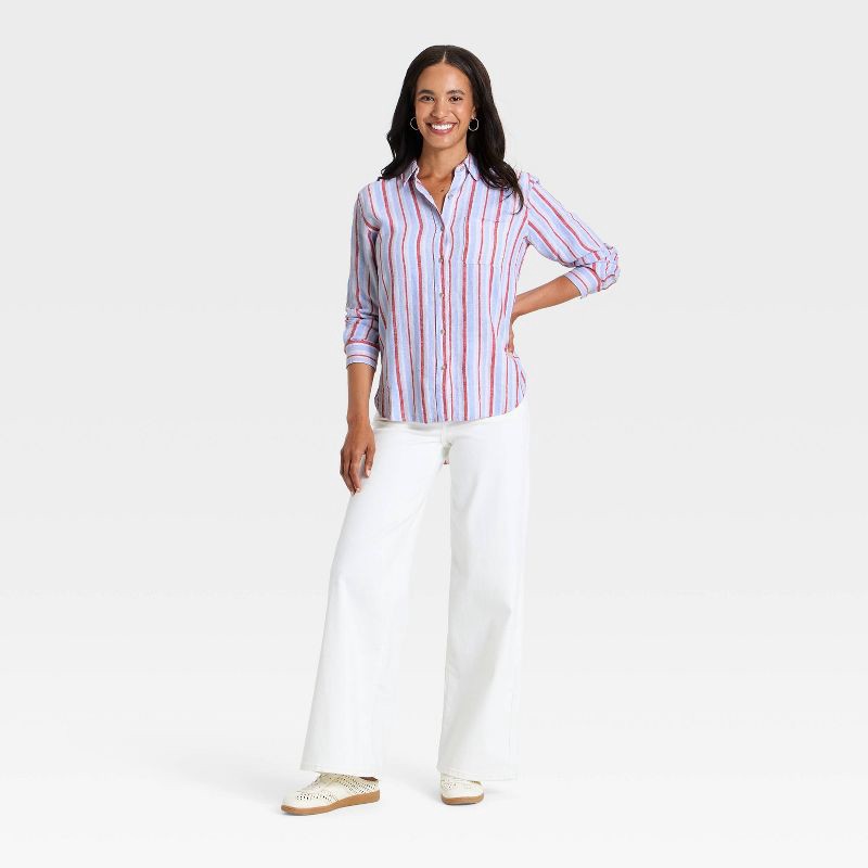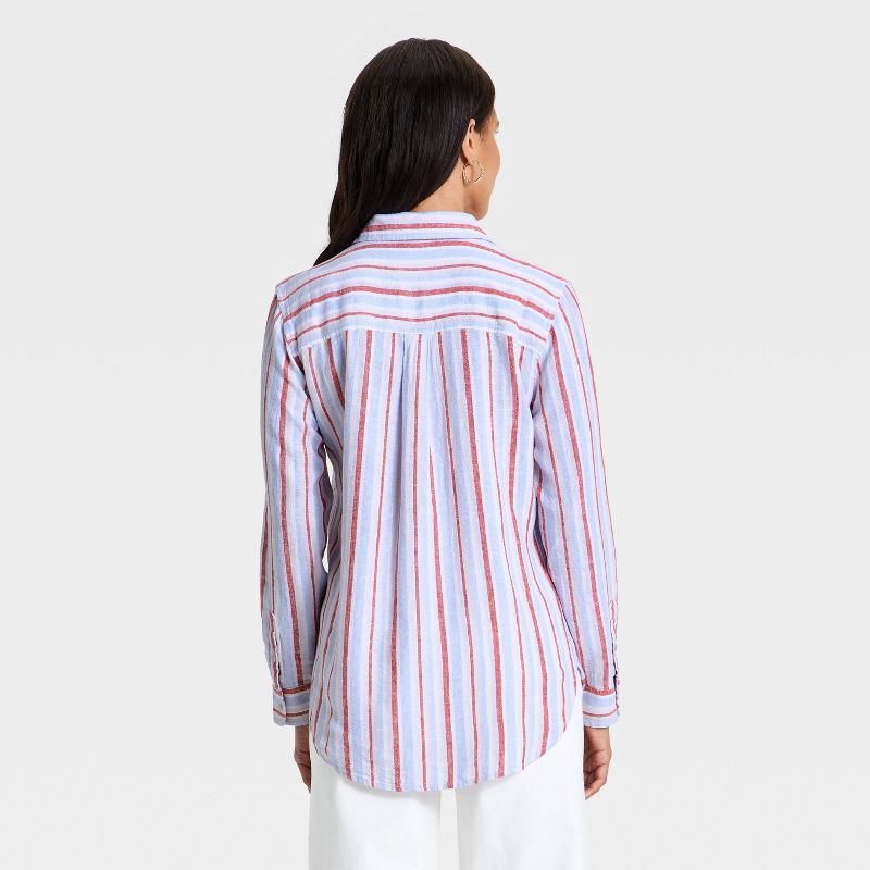 Women's Long Sleeve Linen Collared Button-Down Shirt - Universal Thread™ Multicolor Striped XL