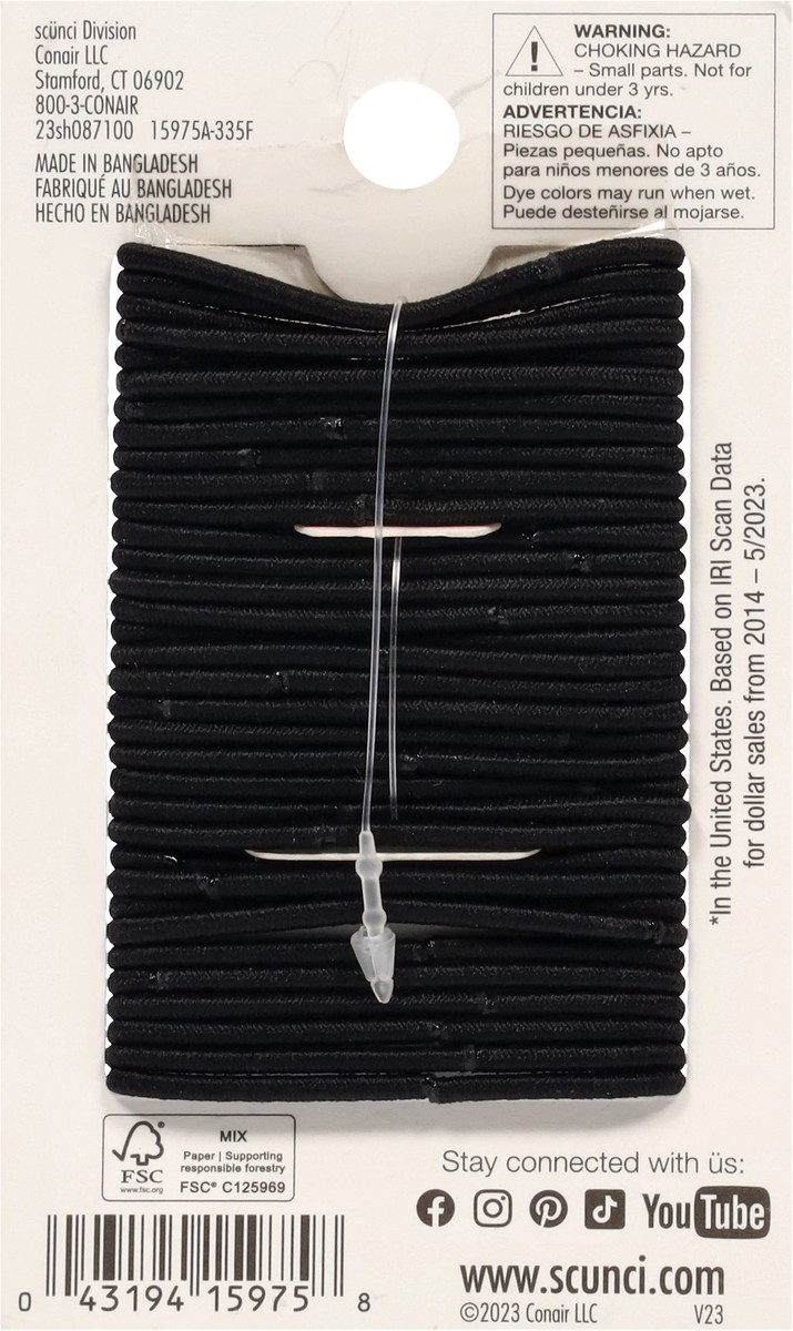 scünci No Damage Gentle Hold Elastics, Black, 34 Count