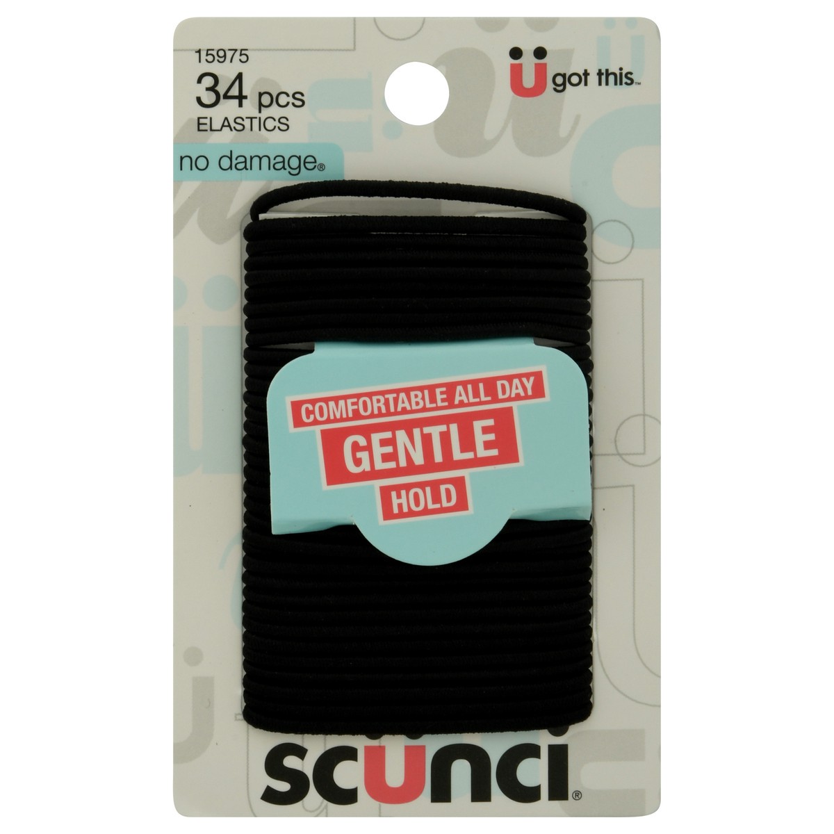 scünci No Damage Gentle Hold Elastics, Black, 34 Count