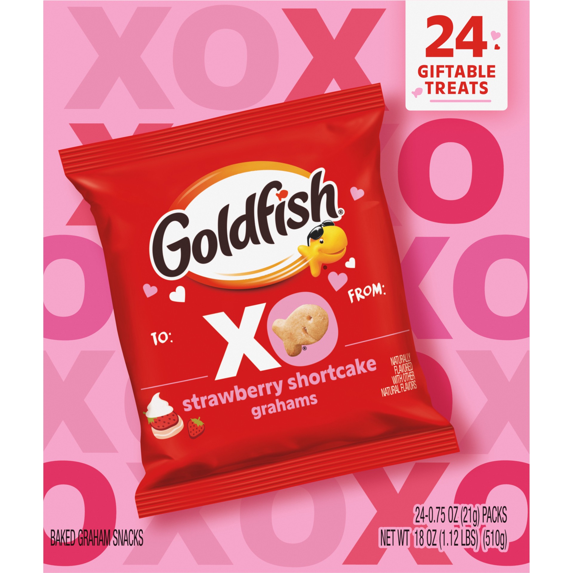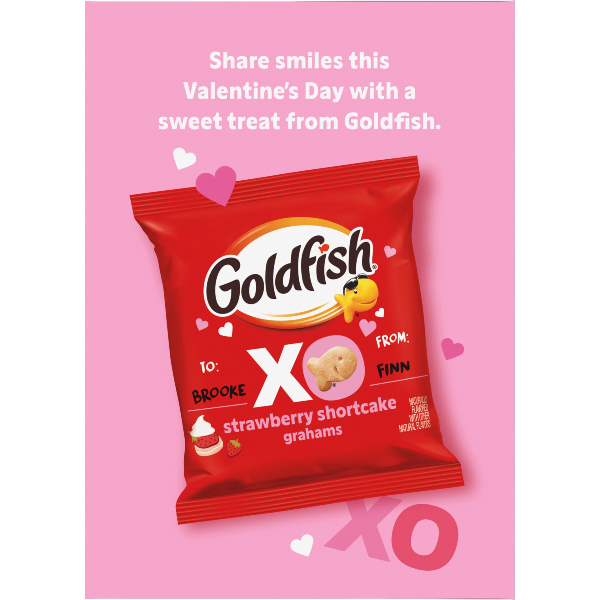 Share smiles this Valentine's Day with Goldfish Strawberry Shortcake Flavored Baked Grahams. This box of 24 Valentine's Day treat pouches is perfect to gift to friends. There is even a place on the po…