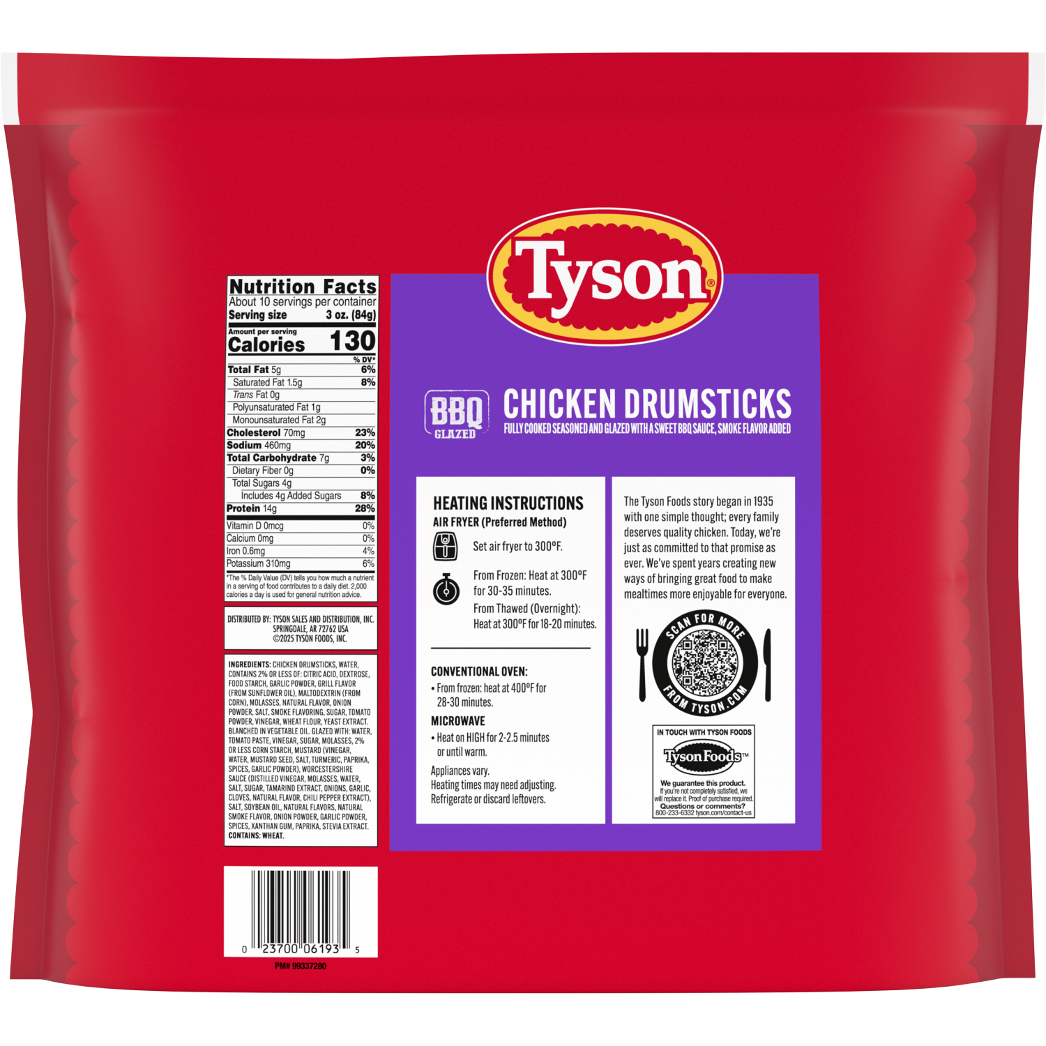 Bring everyone to the table with Tyson® BBQ Glazed Chicken Drumsticks, Fully Cooked, a family-size favorite with jumbo drumstick cuts that deliver big flavor. Made with 100% all natural* chicken thats…