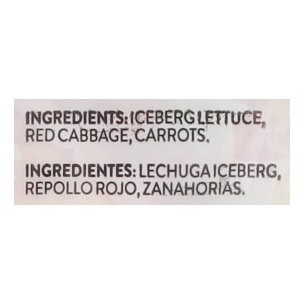 Iceberg Lettuce, Red Cabbage, Carrots.