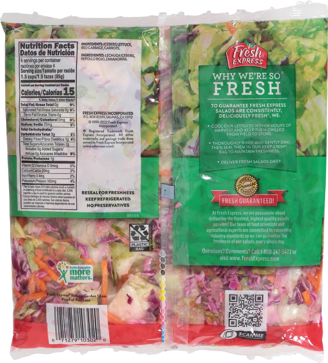 Guaranteed fresh. Thoroughly washed. Ready to eat. Garden. Fruits & veggies more matters. Why We're So Fresh: To guarantee fresh express salads are consistently, deliciously fresh, we: Cool our lettuc…