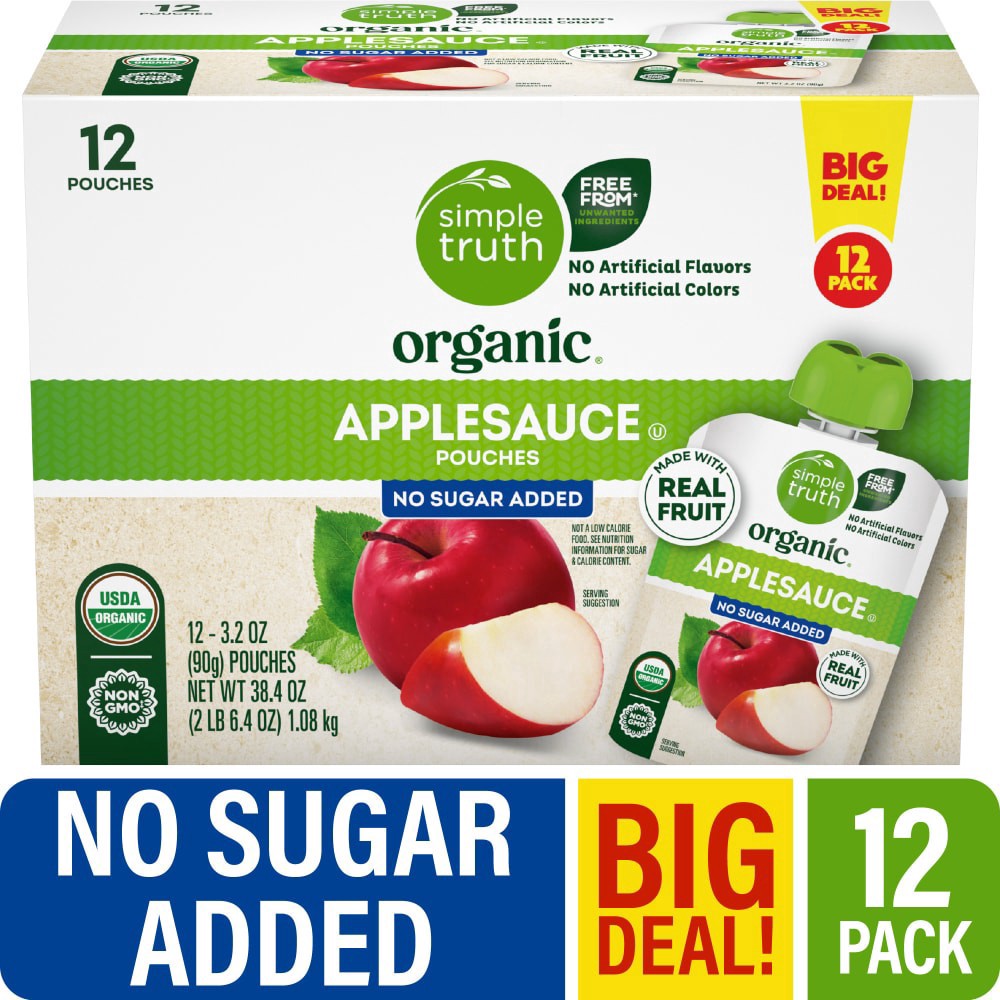 Simple Truth Organic® No Sugar Addedˆ Applesauce Pouches BIG DEAL! offer a tasty and convenient snack. USDA organic, non-GMO, and containing no artificial flavors or colors, you get to enjoy applesauc…