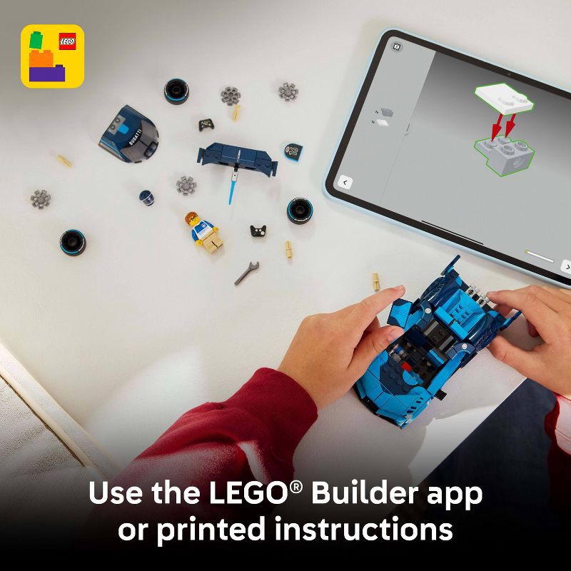 - DRIVER MINIFIGURE & ACCESSORIES – Includes a driver minifigure wearing a Bugatti outfit and helmet with a wig and wrench accessory that can be placed in the cockpit for pretend play racing action
