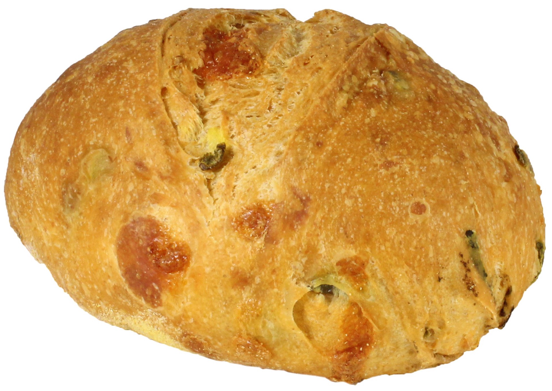 Give your favorite sandwich a spicy, cheesy kick! Crusty bread, made with our natural starter, is loaded with sliced jalapeño and cubed cheddar.