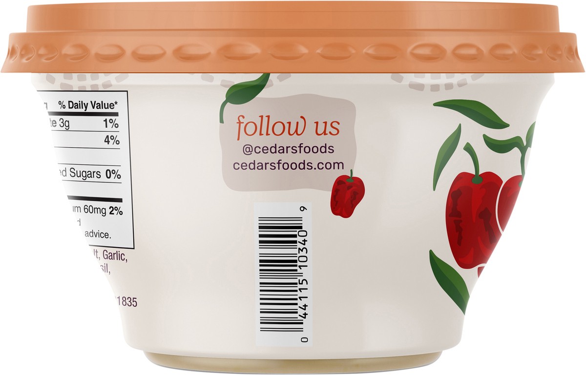 Steamed Chickpeas (Chickpeas, Water), Sesame Tahini (Ground Sesame Seeds), Roasted Red Peppers, Olive Oil, Organic Lemon Juice, Organic Vinegar, Garlic, Sea Salt, Avocado Oil, Organic Honey, Arrowroot…