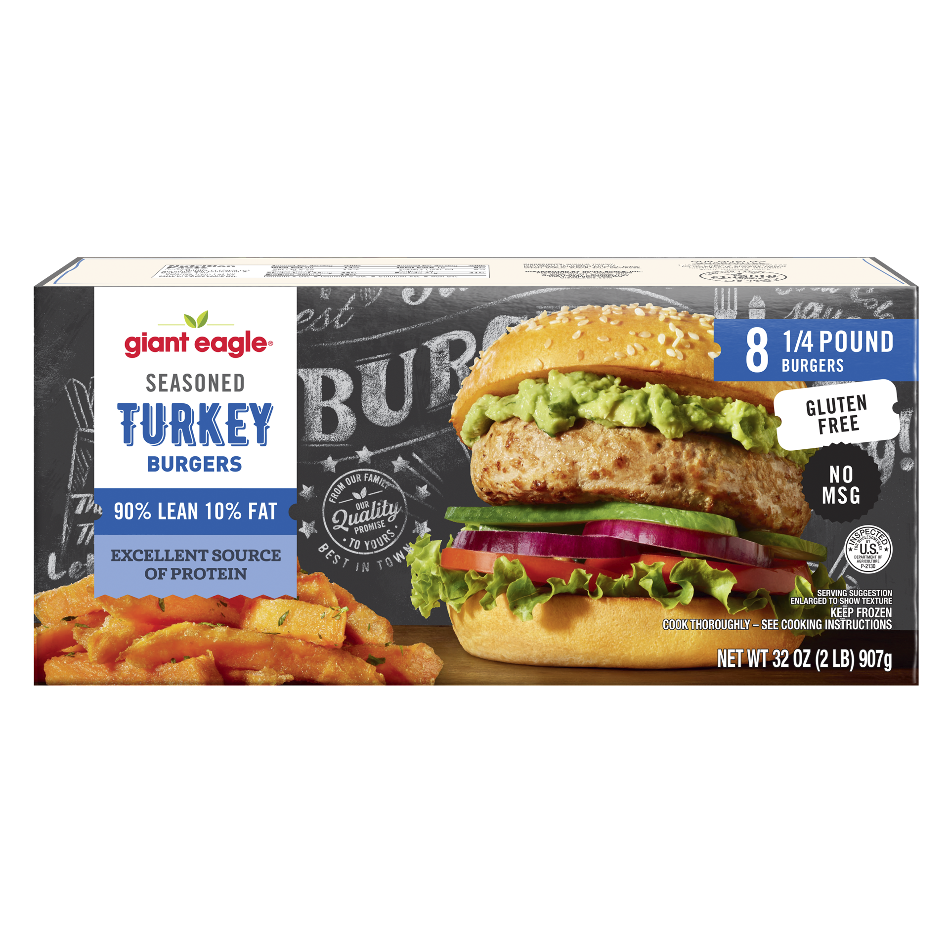 Giant Eagle Seasoned Turkey Burgers, 90% Lean 10% Fat, 8 Count