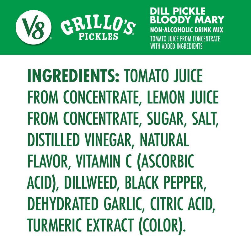 - Six (6) 8 fl oz cans of V8 Grillo's Pickles Dill Pickle Bloody Mary Mix