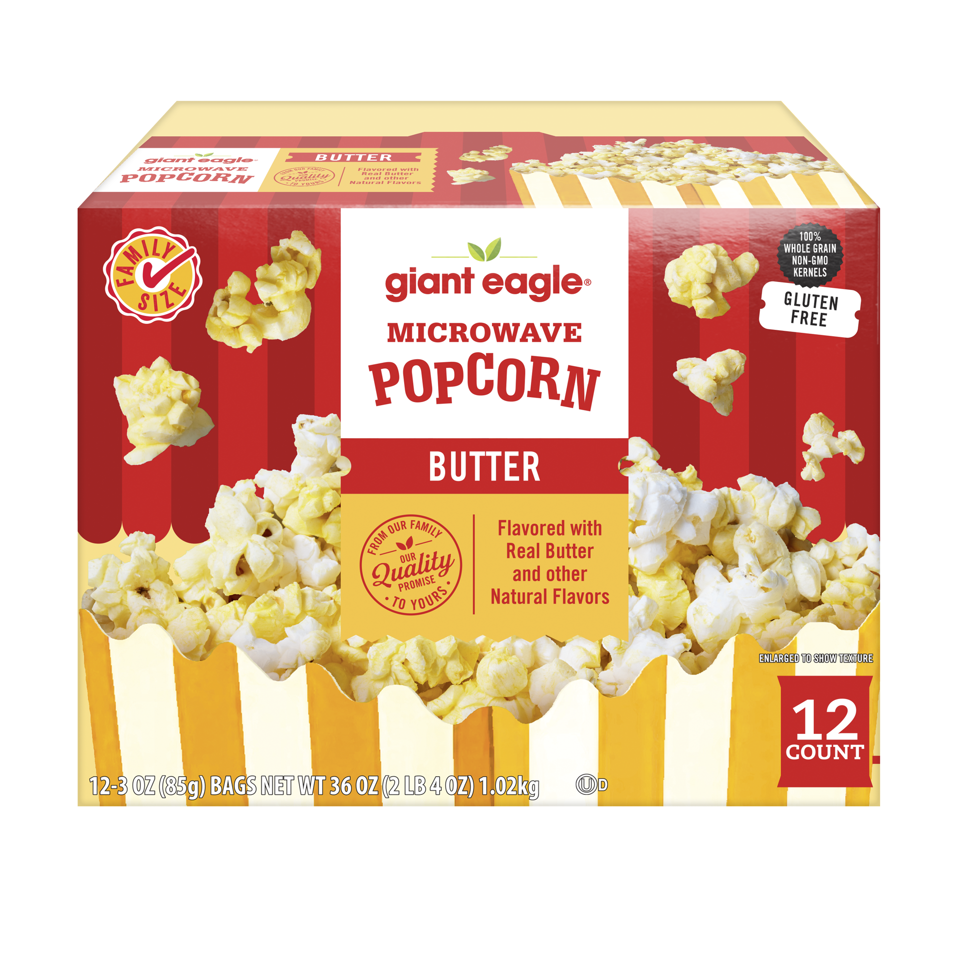 Giant Eagle Microwave Popcorn, Butter, Family Size, 12 Count