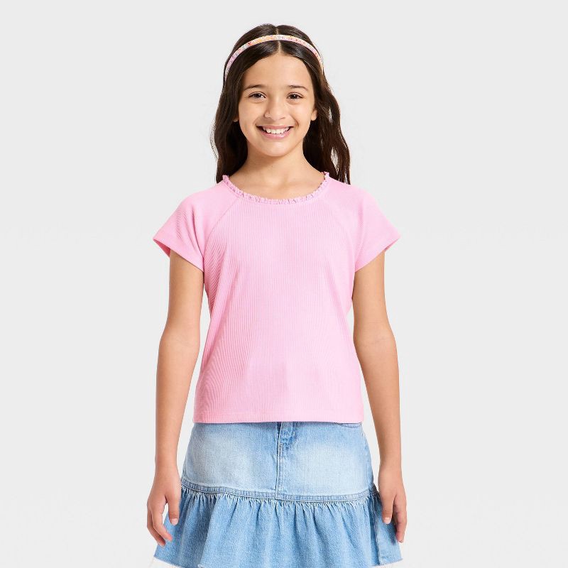 Girls' Short Sleeve Fitted Ribbed T-Shirt - Cat & Jack™ Pink L