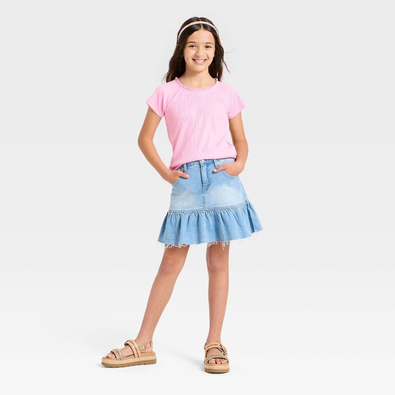 Add charming style to your kid's wardrobe with this Short-Sleeve Fitted Ribbed T-Shirt from Cat & Jack™. This ribbed T-shirt is made from a midweight cotton-polyester-spandex blend for all-day comfort…