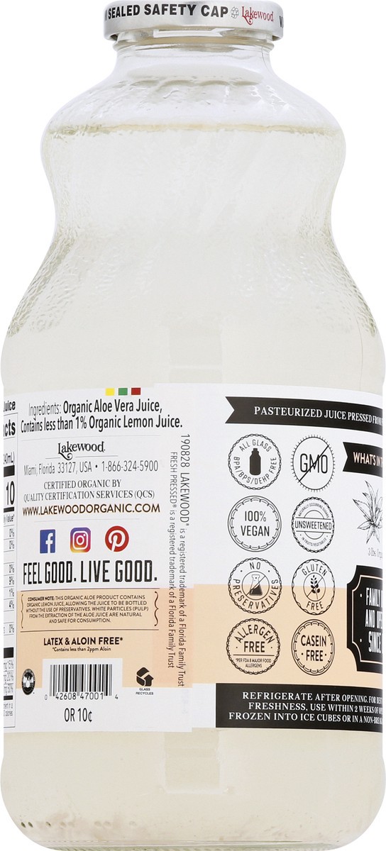 Lakewood Organic Juice Fresh Pressed Gmo Free Pure Aloe - 32 Fl. Oz.