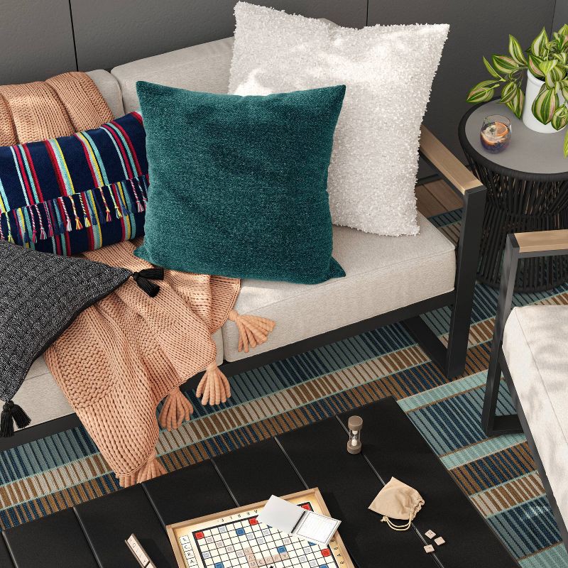Elevate the look of your outdoor space with the Boucle Solid Square Outdoor Throw Pillow from Threshold™. This throw pillow is designed in a solid color with boucle fabric for a textured appeal you'll…