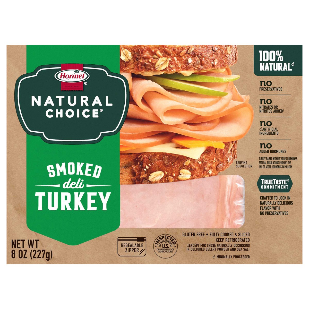 - HORMEL NATURAL CHOICE Sliced Smoked Deli Turkey Lunch Meat comes in a convenient resealable package