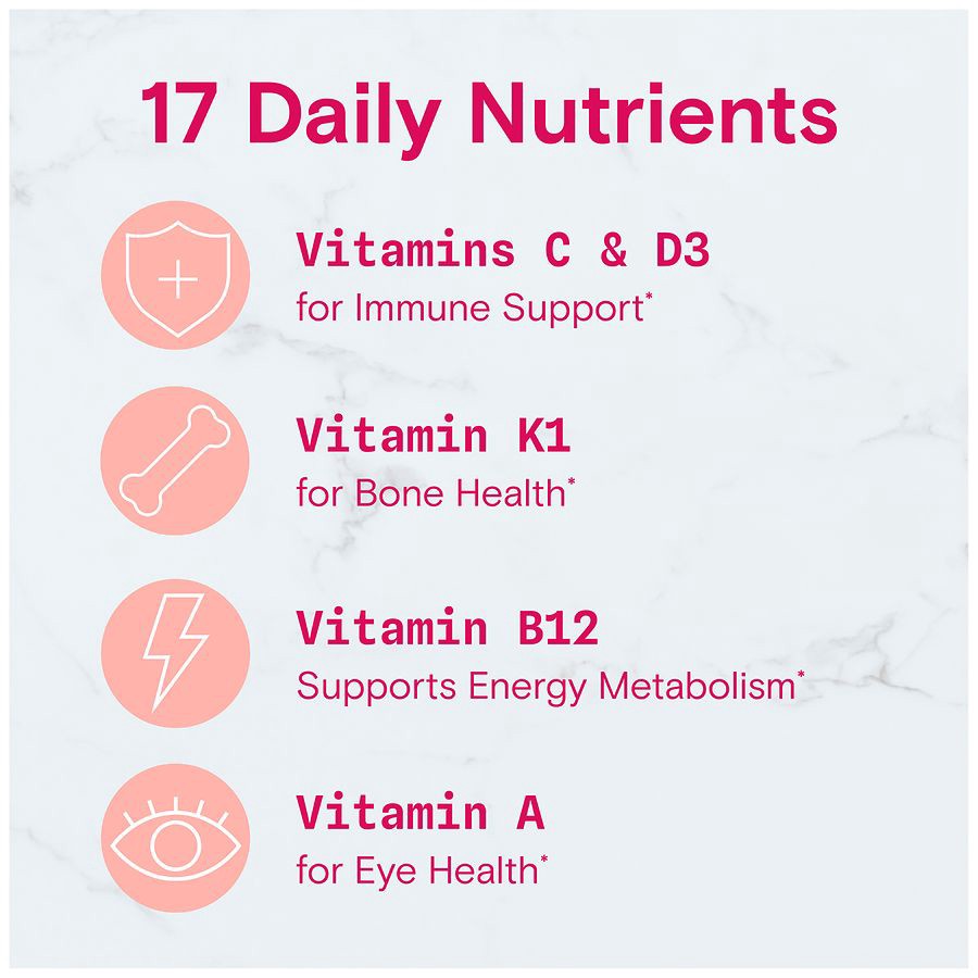 SmartyPants Women's Multi Gummies - 60 count; SmartyPants Women's Multi gummies are made [formulated] with 17 nutrients including vitamin D3 for immune support, vitamin B12 to support energy metabolisā¦