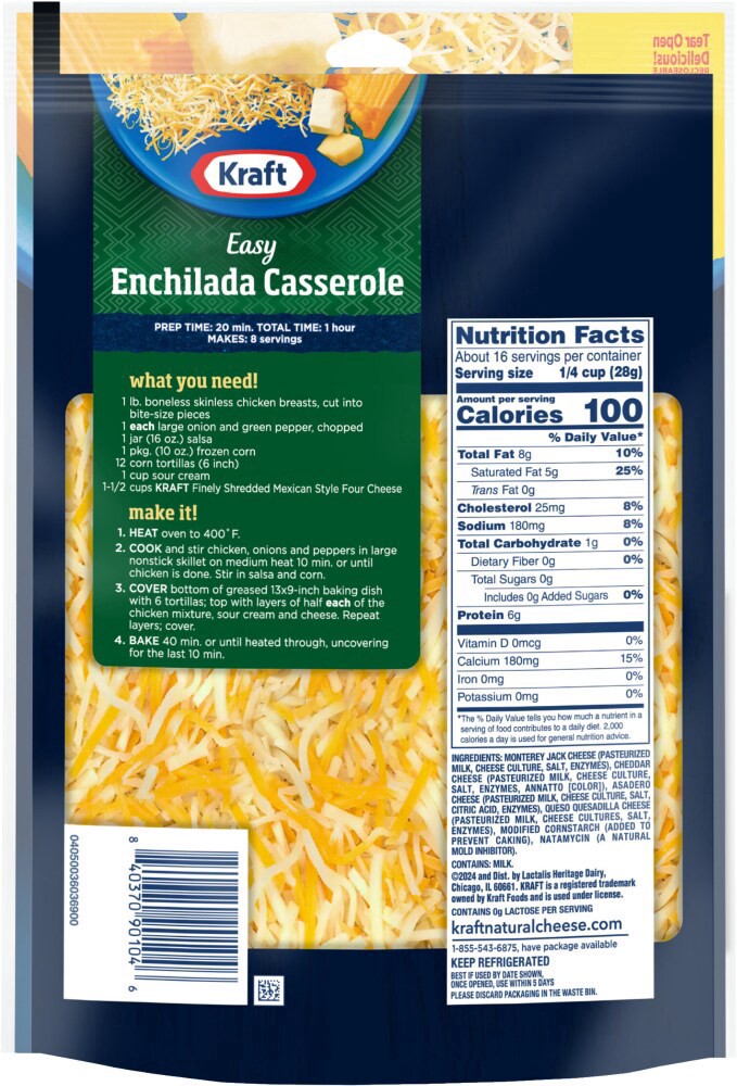 Kraft Mexican Style Four Cheese Finely Shredded Natural Cheese Bag