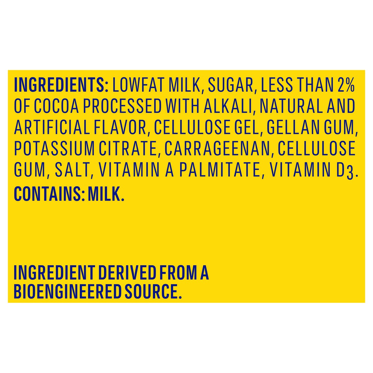 LOWFAT MILK, SUGAR, LESS THAN 2% OF COCOA PROCESSED WITH ALKALI, NATURAL AND ARTIFICIAL FLAVOR, CELLULOSE GEL, GELLAN GUM, POTASSIUM CITRATE, CARRAGEENAN, CELLULOSE GUM, SALT, VITAMIN A PALMITATE, VIT…
