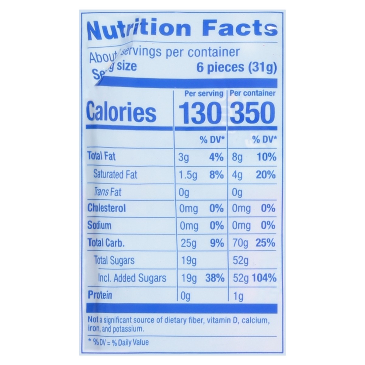Glucose Syrup, Sugar, Hydrogenated Palm Kernel Oil, Less than 2% of Gelatin, Malic Acid, Citric Acid, Natural and Artificial Flavors, Spirulina Extract (Color), Fruit Juice Concentrate (Color), Vegeta…