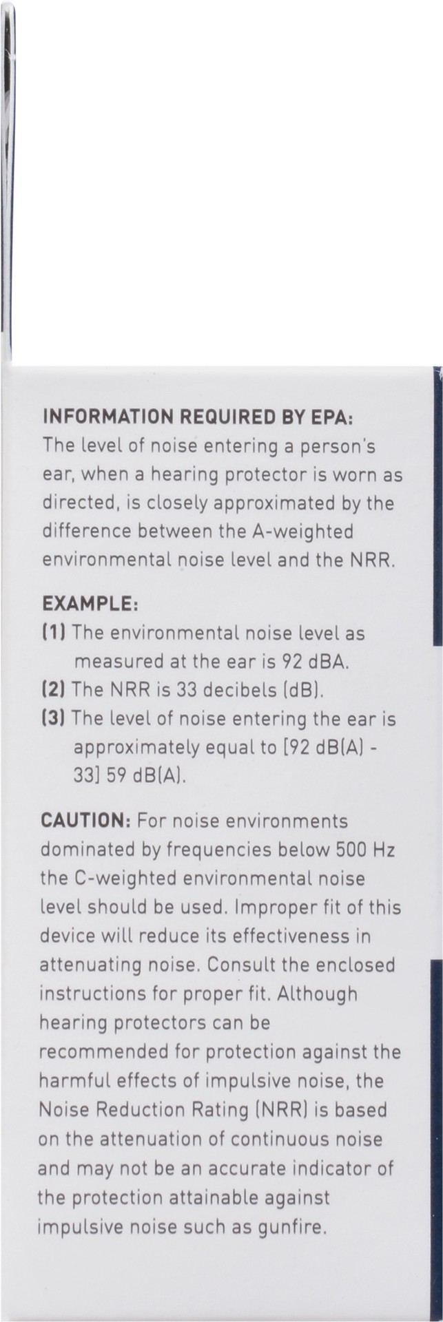 Noise reduction rating NRR 33. Smooth foam for a soft, ultimate fit. Contoured shape for ultimate fit. Not made with natural rubber latex. Noise Reduction Rating: 33 decibels (when used as directed). …
