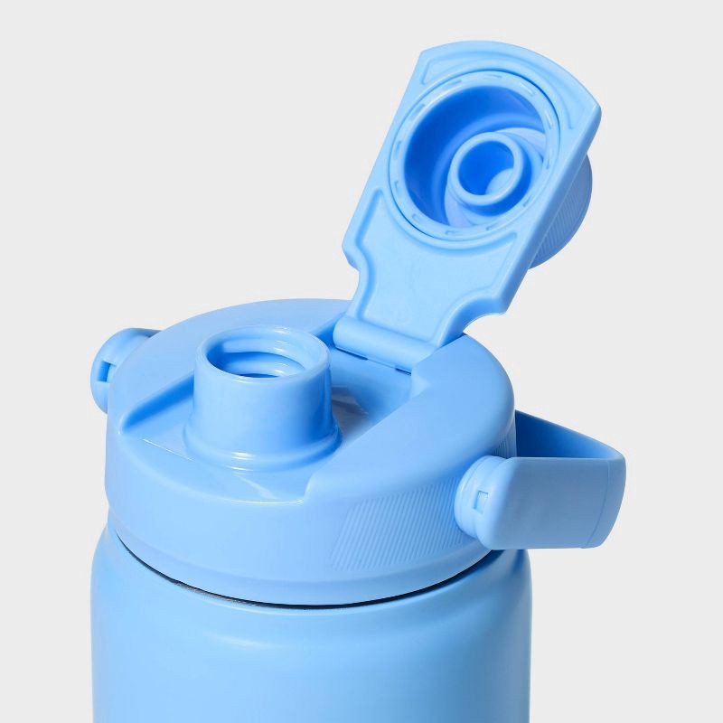 Why we're ALL IN:16 fluid-ounce blue water bottle crafted from stainless steel material for everyday use. Features polypropylene lid with flip closure for easy drinking and is suitable for both hot an…