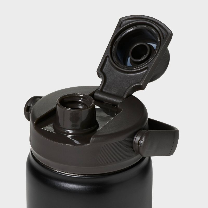Why we're ALL IN:16 fluid-ounce black water bottle crafted from stainless steel material for everyday use. Features polypropylene lid with flip closure for easy drinking and is suitable for both hot a…
