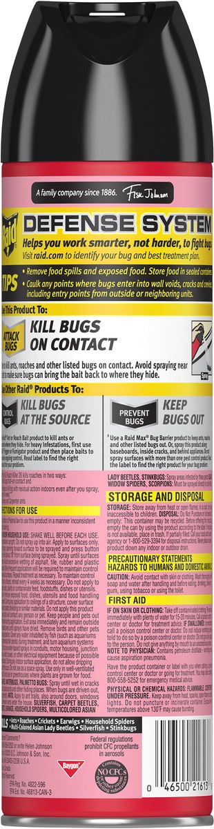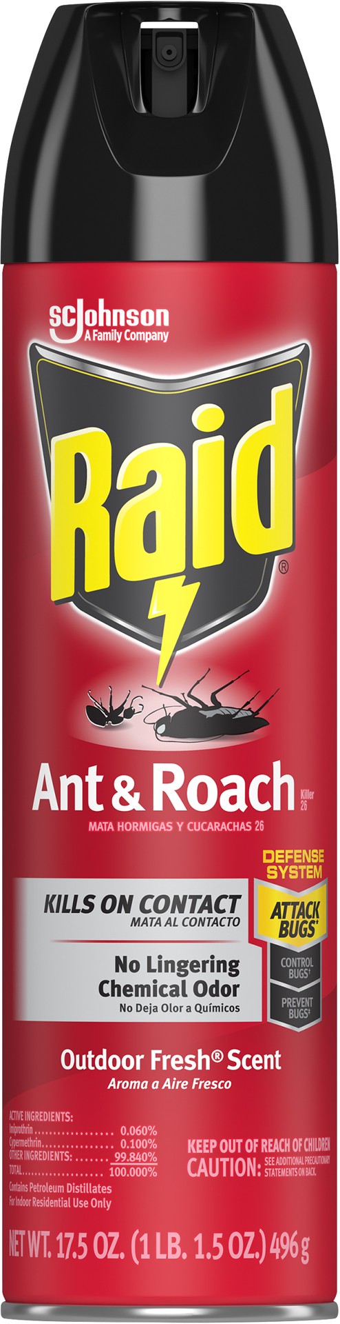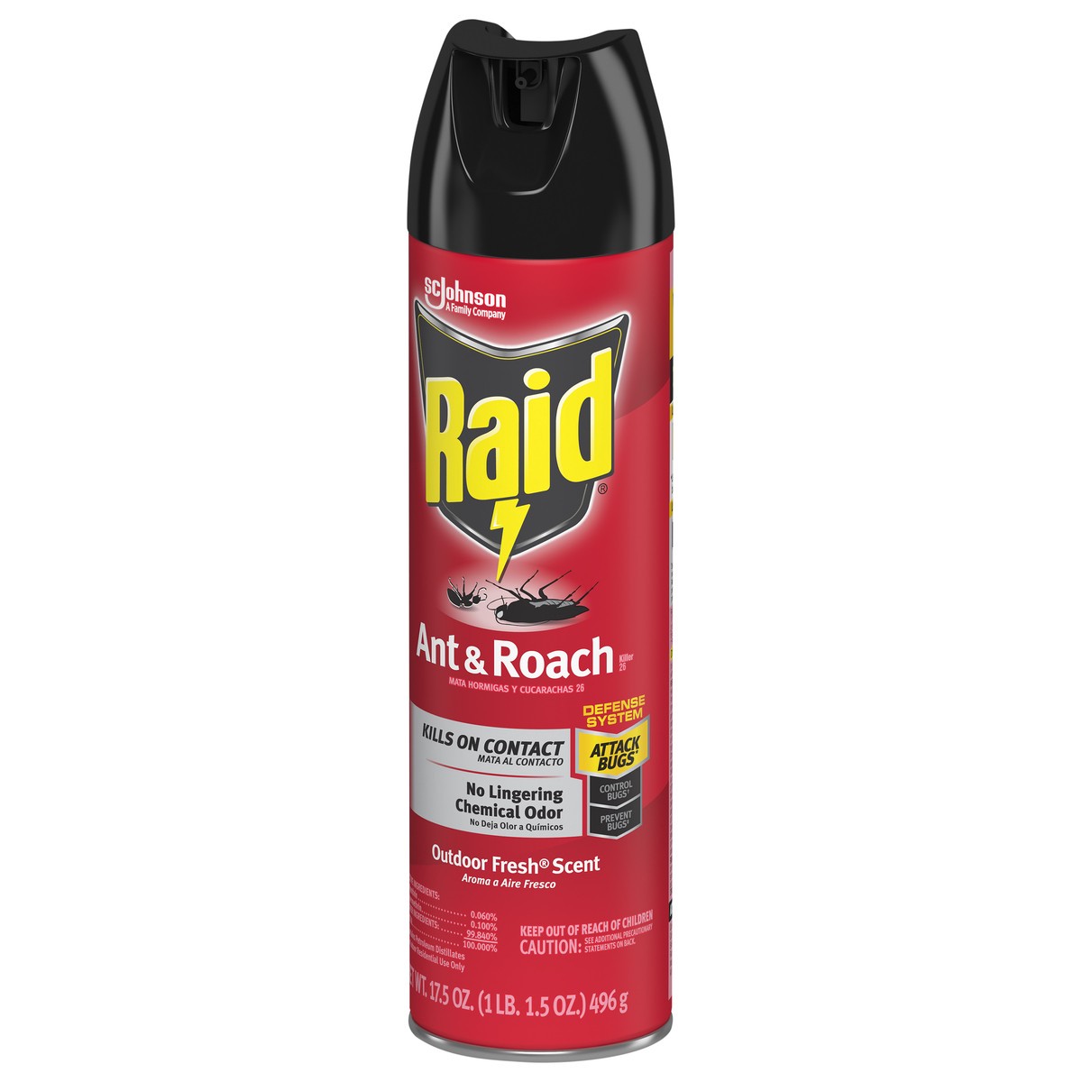 SC Johnson a Family Company. Kills on contact. No lingering chemical odor. Defense system. Attach bugs (Use to kill ants, roaches and other listed bugs on contact. Avoid spraying near baits to make su…