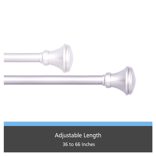 Kenney Fast Fit Vance 5/8" No Measure Curtain Rod, 36-66", Polished Pewter