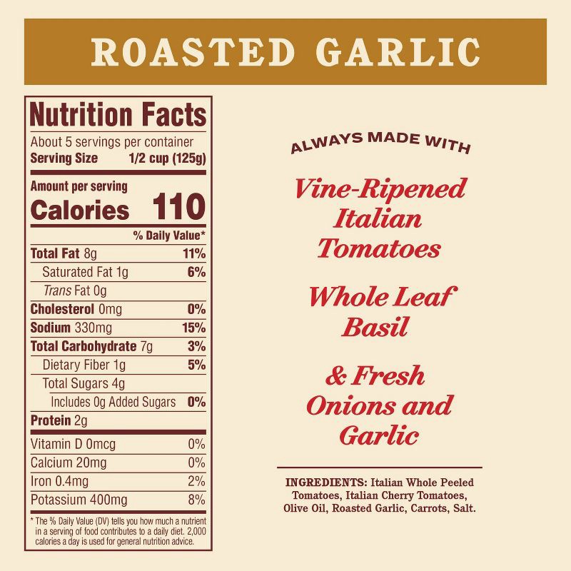 Rao's Homemade Roasted Garlic Tomato Sauce Premium Quality All Natural Tomato Sauce & Pasta Sauce Keto Friendly & Carb Conscious - 24oz