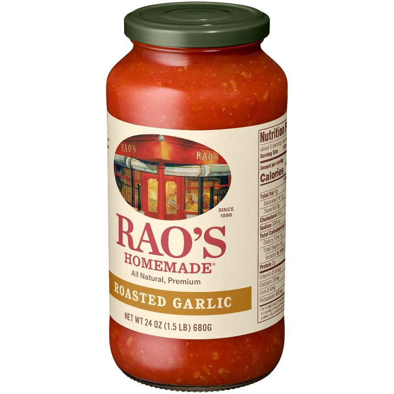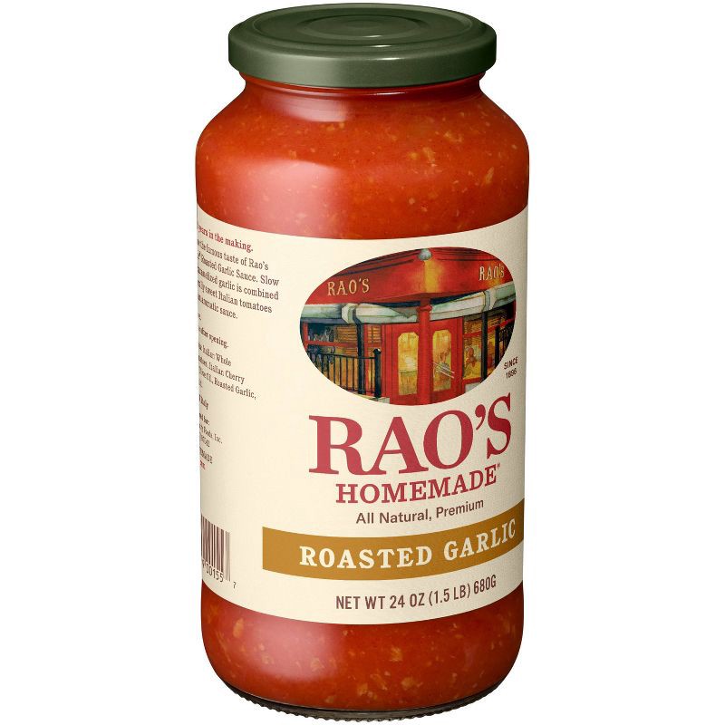 - Bring home the famous taste of Rao's with this 24 ounce jar of Rao's Homemade Roasted Garlic Tomato Sauce.