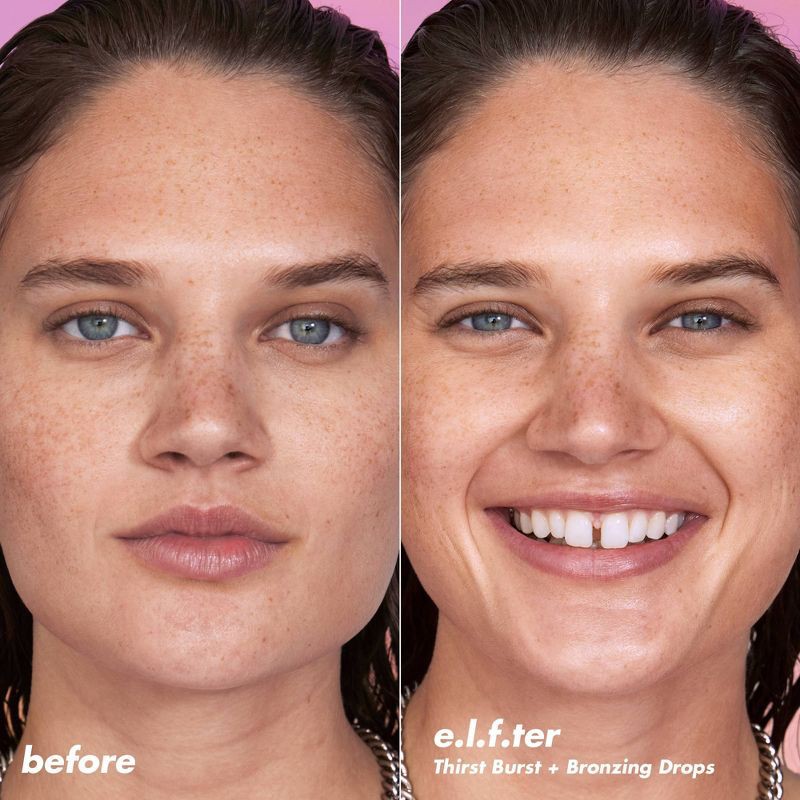 - Features e.l.f.'s new Holy Hydration! Thirst Burst Drops and Bronzing Drops