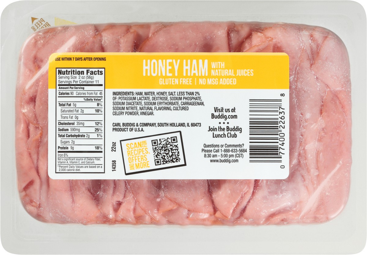 Ham, Water, Honey, Salt, Less than 2% of: Potassium Lactate, Dextrose, Sodium Phosphate, Sodium Diacetate, Sodium Erythorbate, Carrageenan, Sodium Nitrite, Natural Flavoring, Cultured Celery Powder, V…