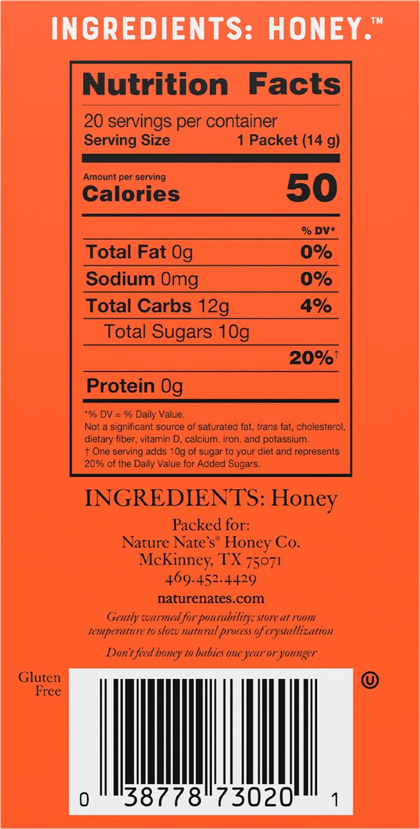 Nature Nates Honey Packets Raw & Unfiltered On The Run - 20-0.33 Fl. Oz.