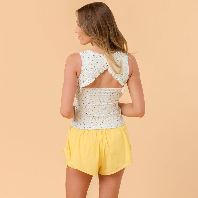 Blogilates Women's Mommy & Me Ruffle Back Tank Top - White Floral Print XL