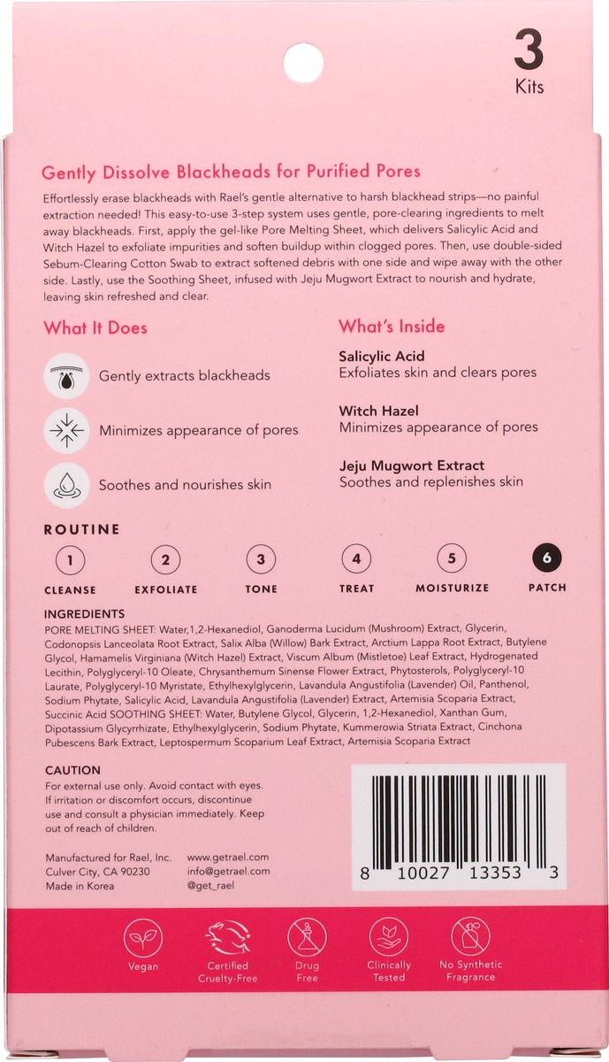 Rael Beauty 3-Step Pore Melting Pack Miracle Patch Blackhead Control 3 Kits