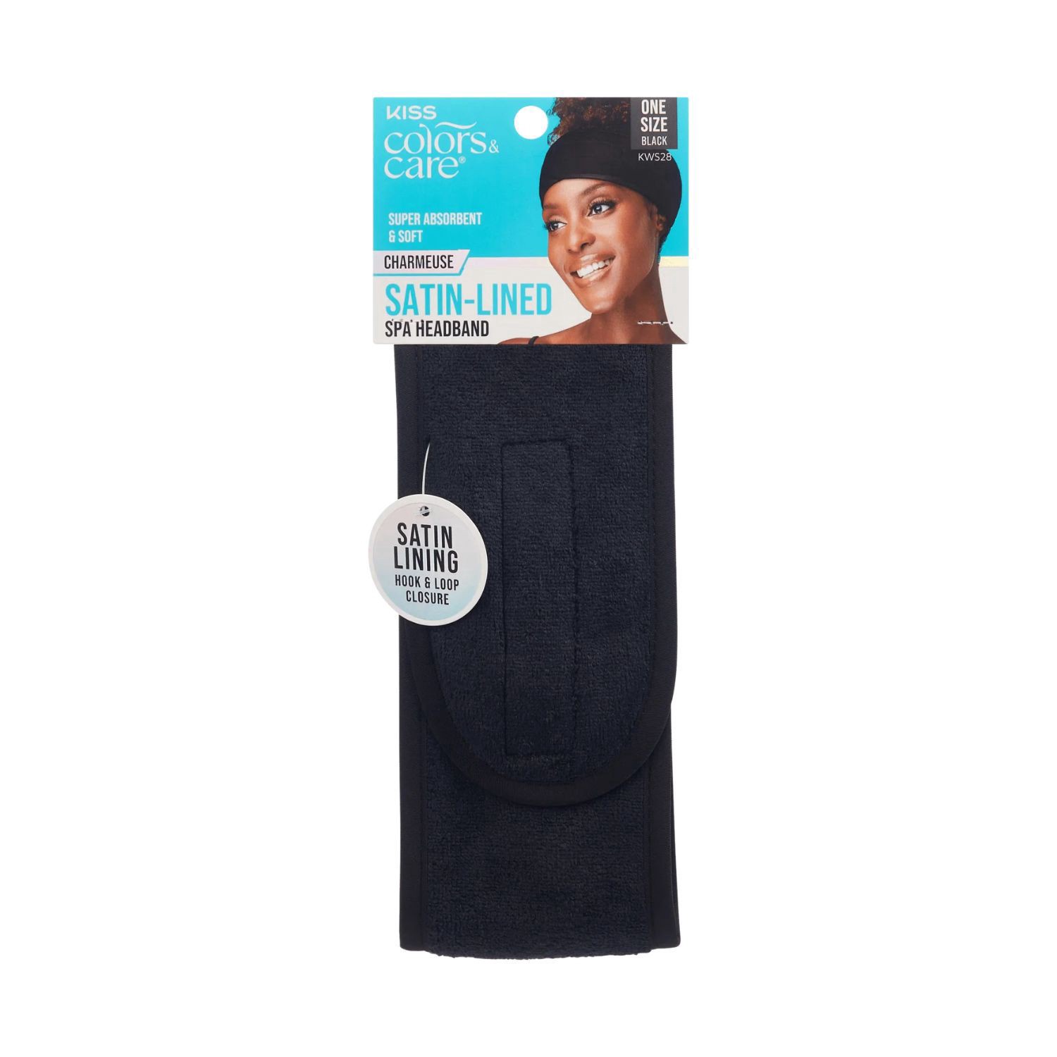 Kiss Colors & Care Satin-Lined Terry Cloth Spa Headband, Black