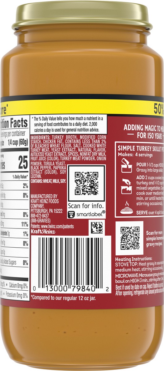 Heinz HomeStyle Roasted Turkey Gravy enhances your family's favorite meals with classic turkey flavor. This tasty gravy is made with real ingredients, including turkey broth, to deliver the smooth tex…
