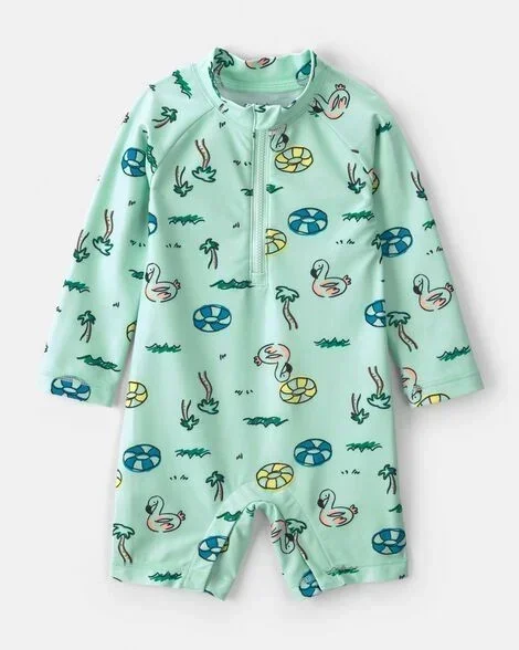 Carters Baby Boy Vacation Long-Sleeve 1-Piece Rashguard Swimsuit - Green Green 18M