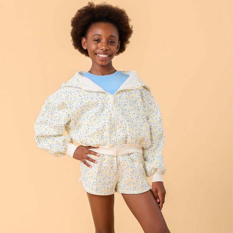 Blogilates Girls' Mommy & Me Marshmallow Hoodie - White Floral Print M