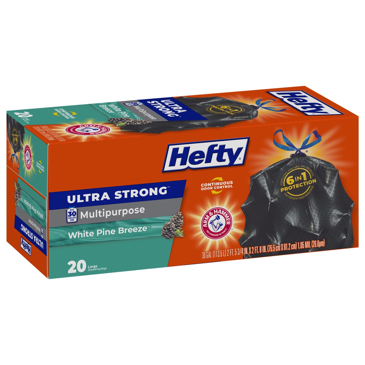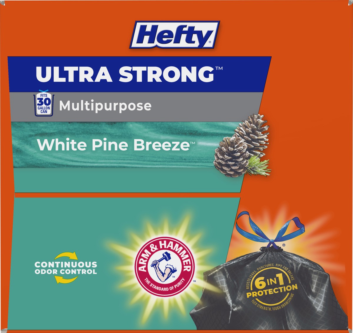 Hefty Ultra Strong Large Multipurpose Drawstring Trash Bags, 30 Gallon - White Pine Breeze Scent