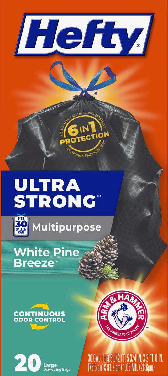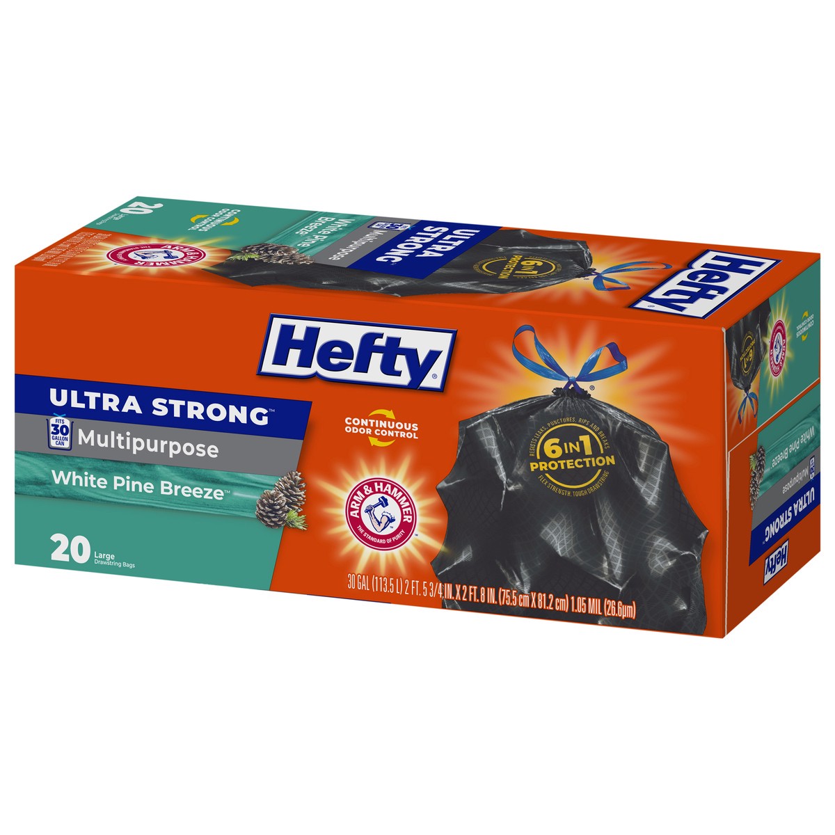 Hefty Ultra Strong Large Multipurpose Drawstring Trash Bags, 30 Gallon - White Pine Breeze