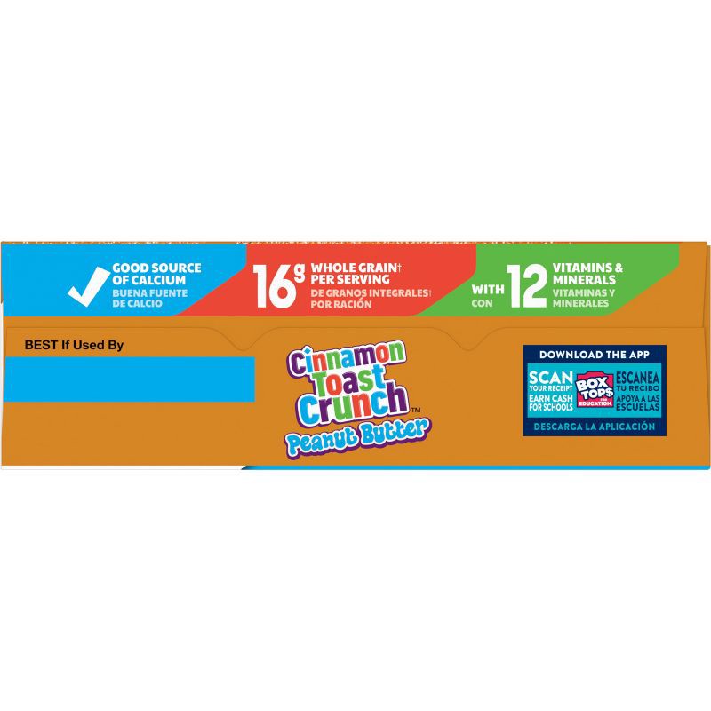 - CONTAINS: One cardboard box of crunchy Cinnamon Toast Crunch Peanut Butter Breakfast Cereal, Family Size, 19.3 oz; perfect for instant snacking, or a part of breakfast and meals