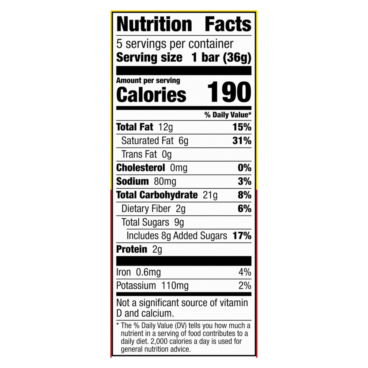 Naturally flavored with other natural flavor. Per Bar: 190 calories; 6 g sat fat (31% DV); 80 mg sodium (3% DV); 8 g added sugars (17% DV). 14 g whole grain*. * 14 g of whole grain per serving. At lea…