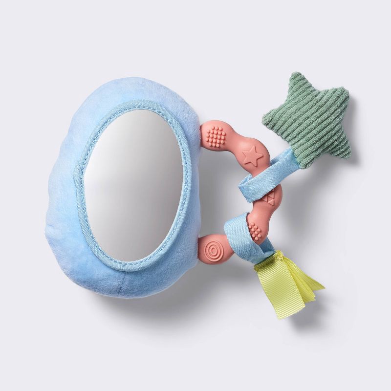 Your little one will love playing with this Egg Small Interactive Handheld Toy from Cloud Island™. Made from 100% recycled polyester, this soft toy is designed as a blue egg and is adorned with a mirr…