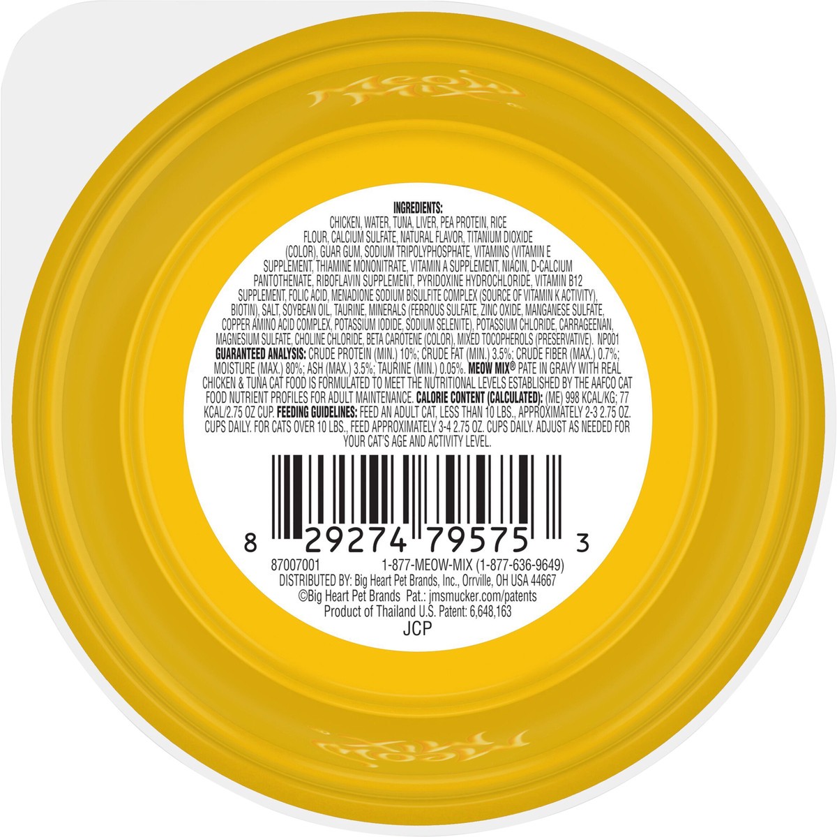 - Contains one (1) 2.75-oz. cup of Meow Mix Paté in Gravy wet cat food