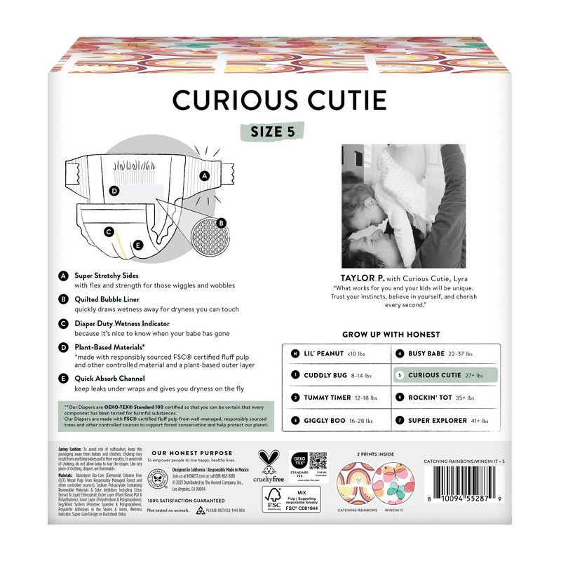 The Honest Company Clean Conscious Disposable Diapers - Wingin' It & Catching Rainbows - Size 5 - 44ct