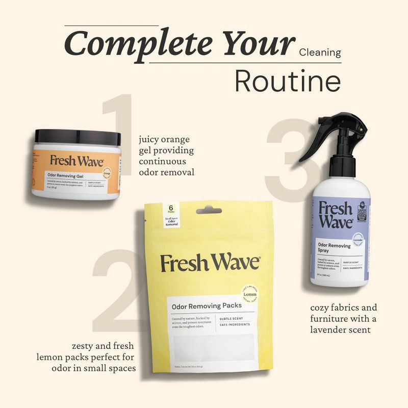 As it evaporates, Fresh Wave Gel completely removes odors using safe, natural ingredients, like water and plant-oils. No toxic chemicals or fake fragrances like traditional air fresheners. Each contai…